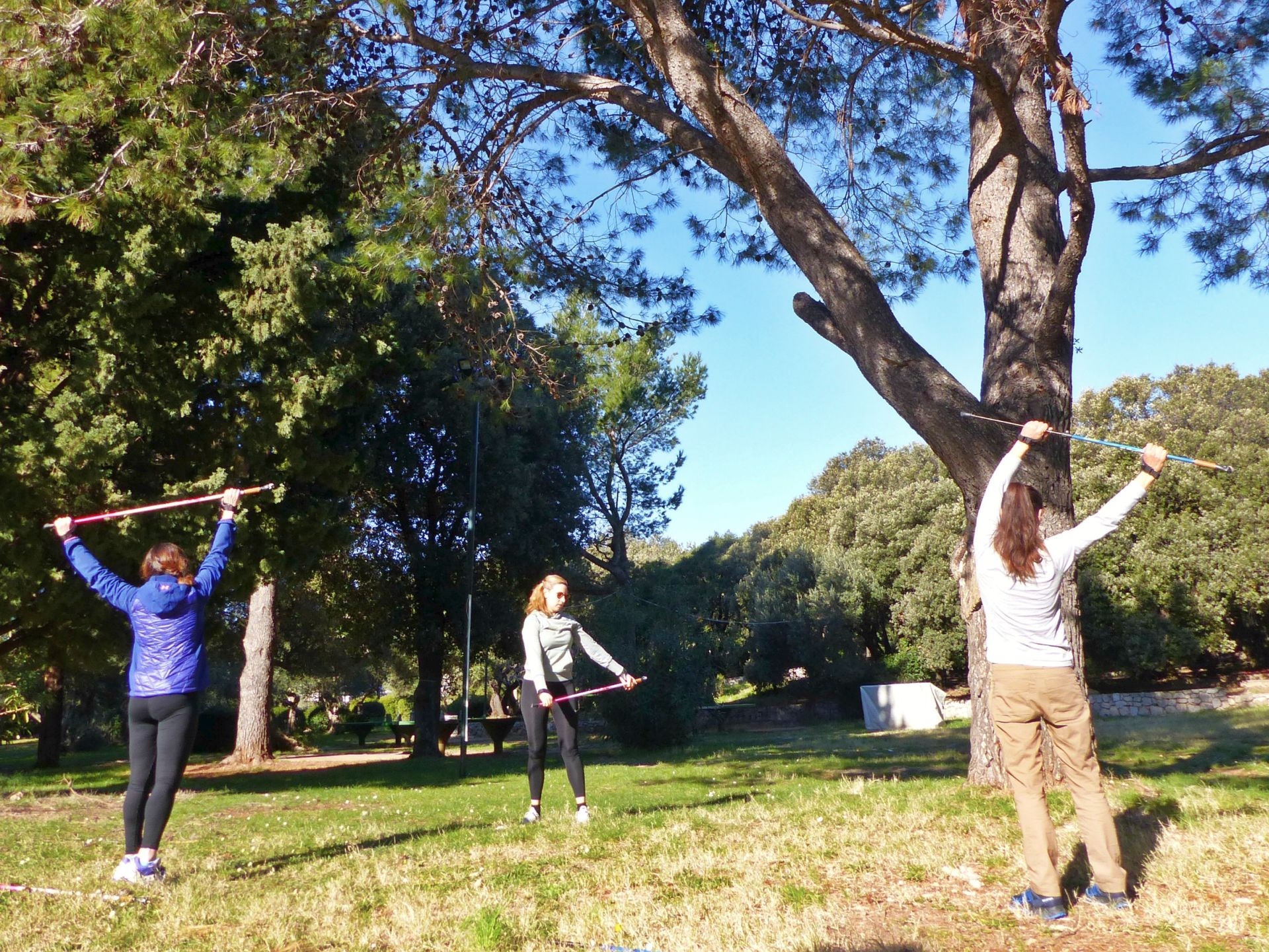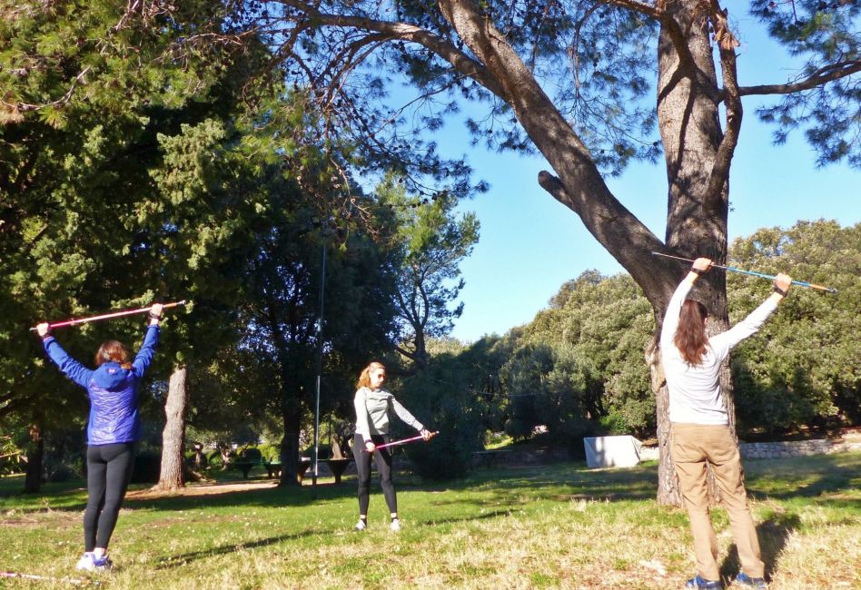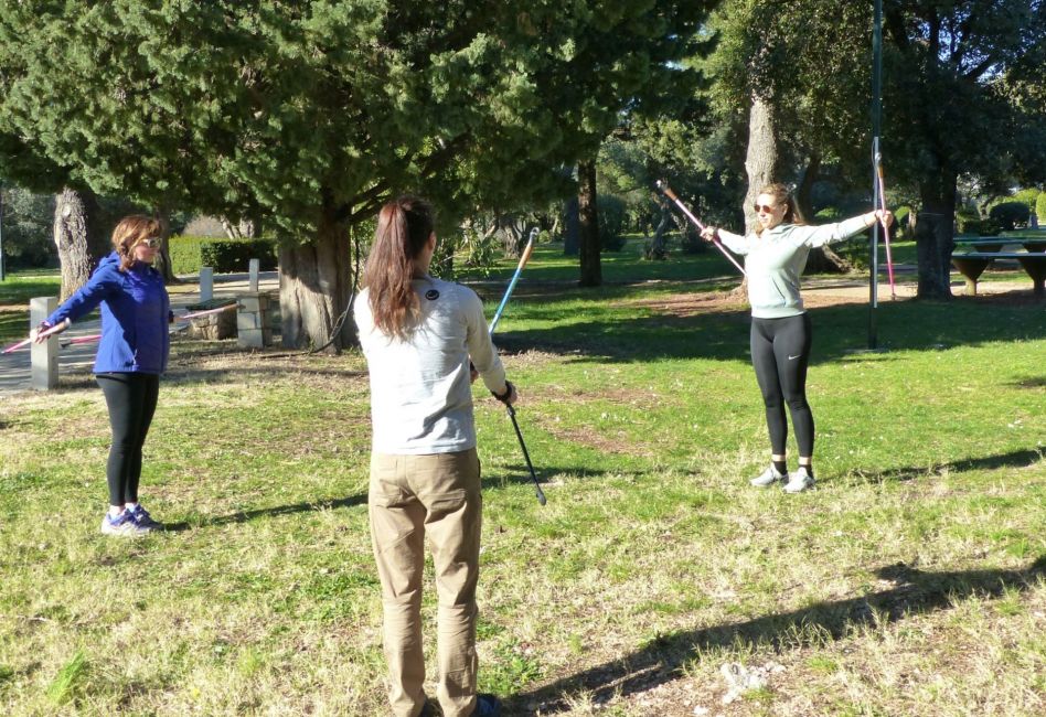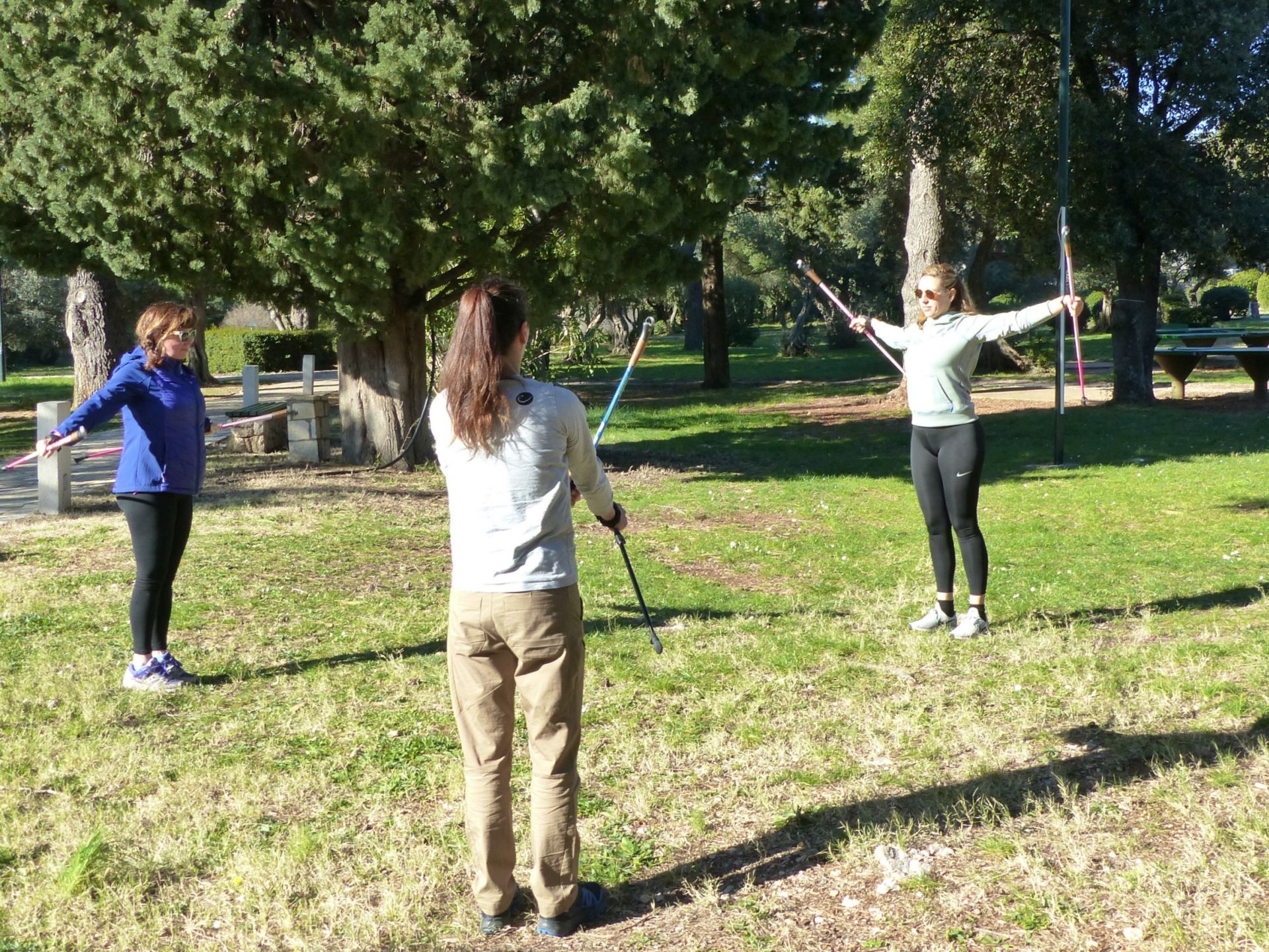 Learn to nordic walk by attending our basic Nordic walking workout tour. It is an hour and a half workout including warm-up and cool-down/stretching. The actual walking time is usually around 45-50 minutes on either grass or asphalt.